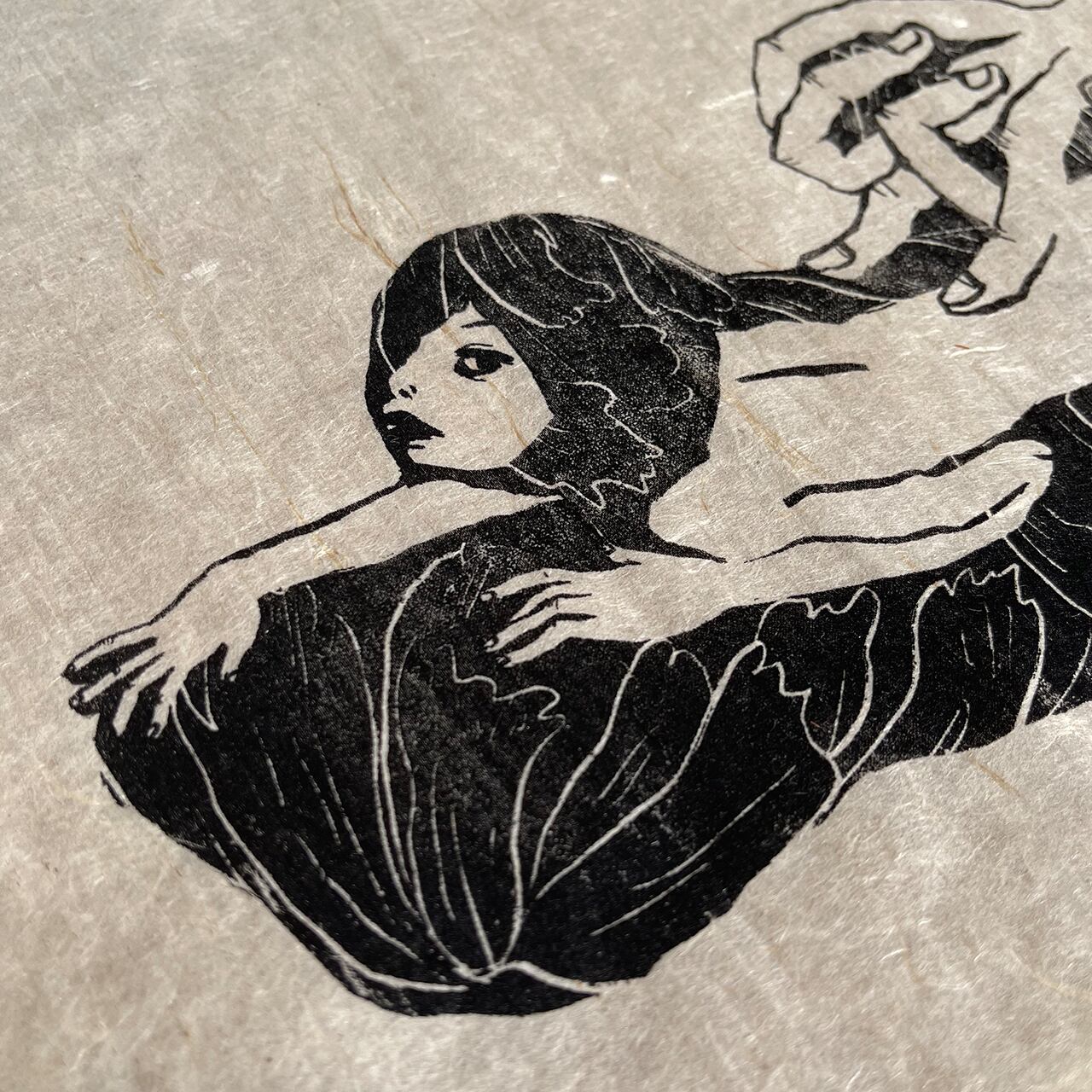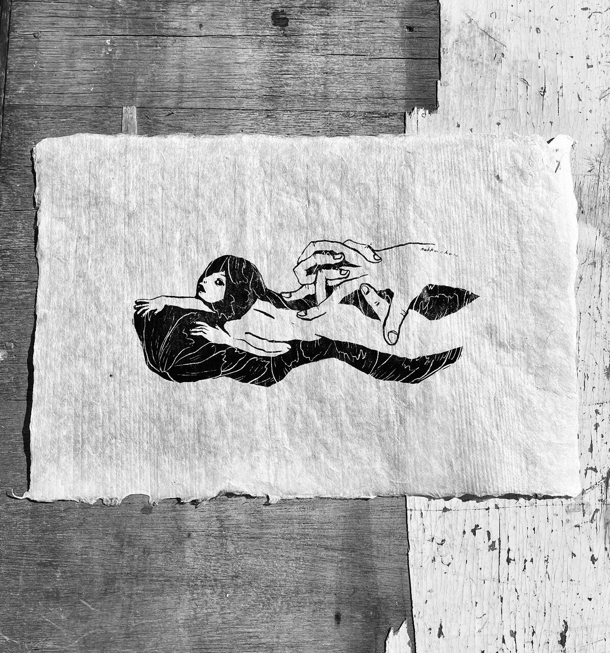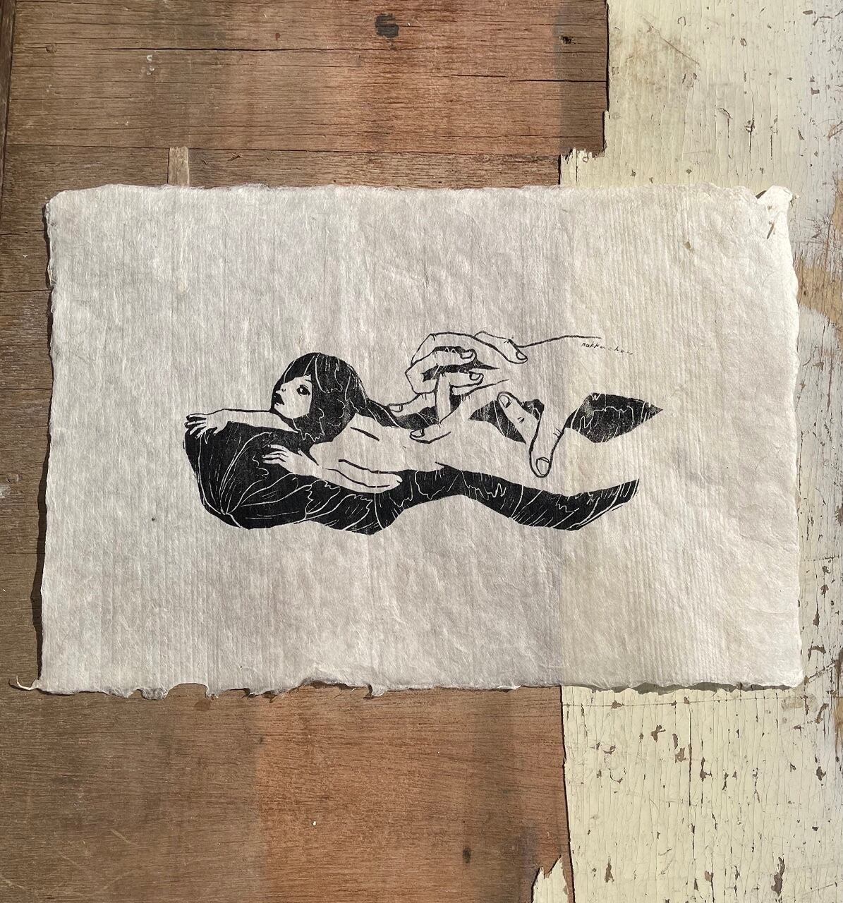 The artist herself prints on the handmade Japanese paper.