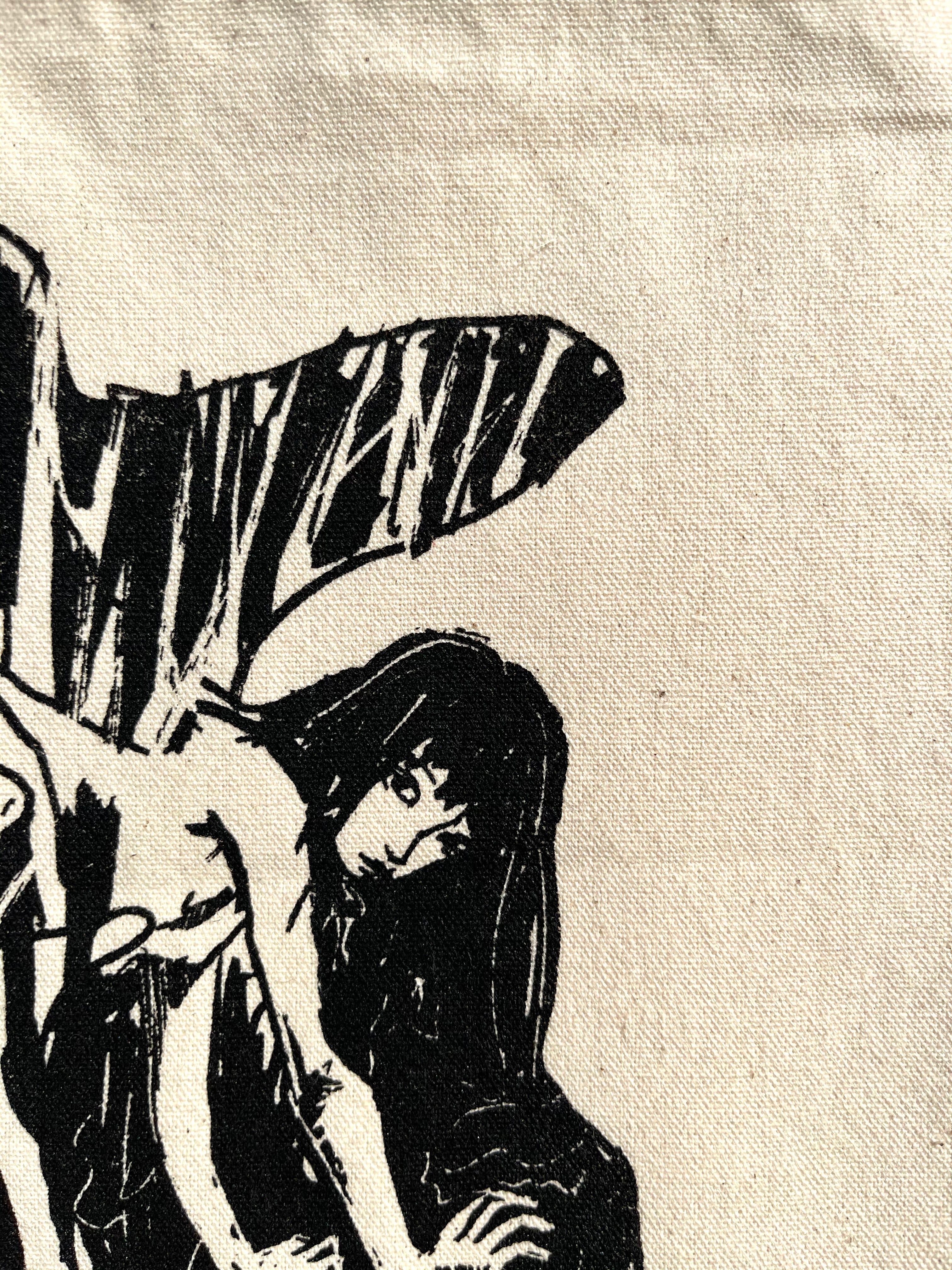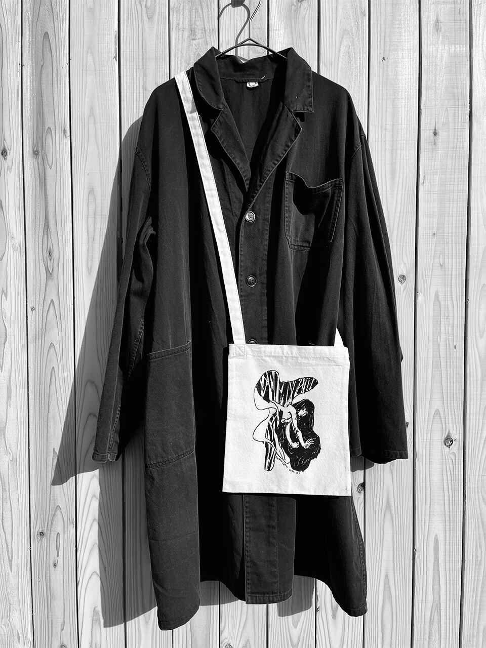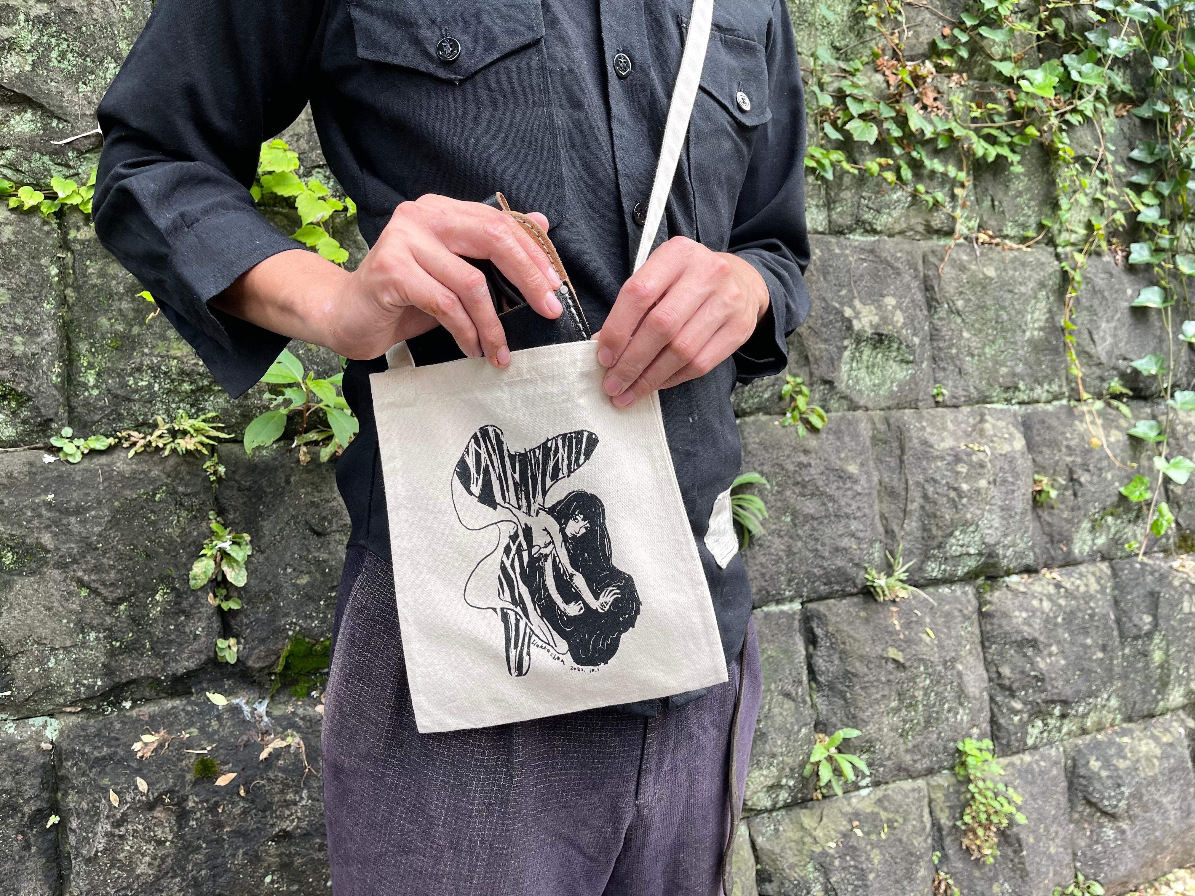 This is a sackosh printed with "Midnight", a work by "Hakkachan", an artist based in Tokyo and LA.